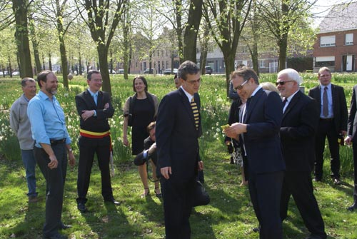 Het woord "middelpunt" verwijst ook naar onze werking als vzw . Om de twee jaar organiseert ze namelijk een grote openluchttentoonstelling waarin we de beeldhouwwerken van kunstenaars uit binnen- en buitenland letterlijk in het middelpunt van de belangstelling plaatsen De tentoonstelling valt samen met de bloeiperiode van wat nu al honderdduizenden narcissen geworden zijn, waardoor natuur en cultuur op een schitterende wijze worden samengebracht. Meer hierover lees je op de website van www.lenteopdendries.be. Het is dan ook niet verwonderlijk dat er zeer vele bezoekers van einde en verre ons plein in die periode komen verkennen.